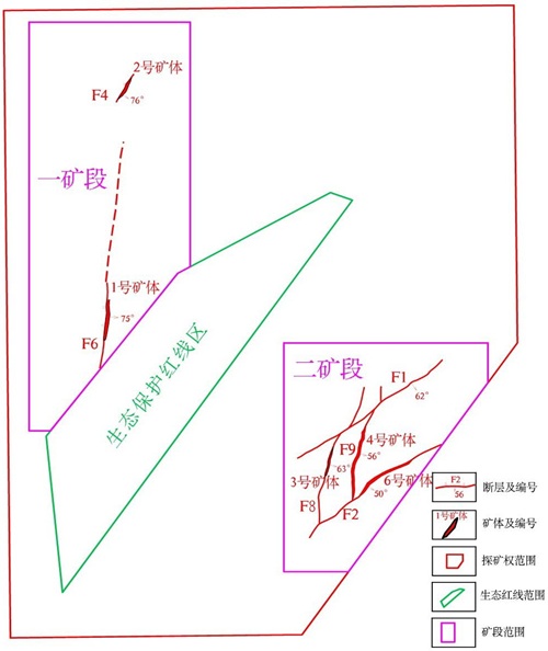4.根據(jù)綜合分析,礦區(qū) 2 礦段區(qū)域次級(jí)構(gòu)造發(fā)育,且礦化體較多,推測(cè)其深部有可能存在規(guī)模相對(duì)較大的成礦構(gòu)造;近南北向斷裂在南北兩端均由第四系覆蓋,其延伸方向上亦存在成礦可能性。