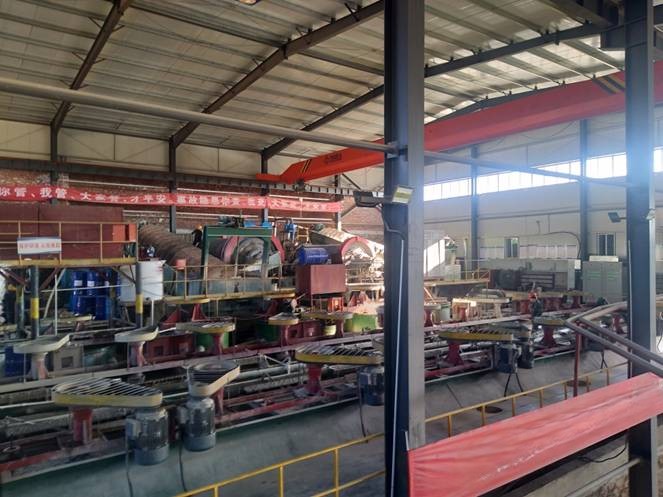 選礦回收率:現(xiàn)有年處理 5 萬噸選廠(位于礦區(qū)西南 1km),采用 “一粗一掃、再磨、五精” 水選流程,回收率 85%,礦石易選。
