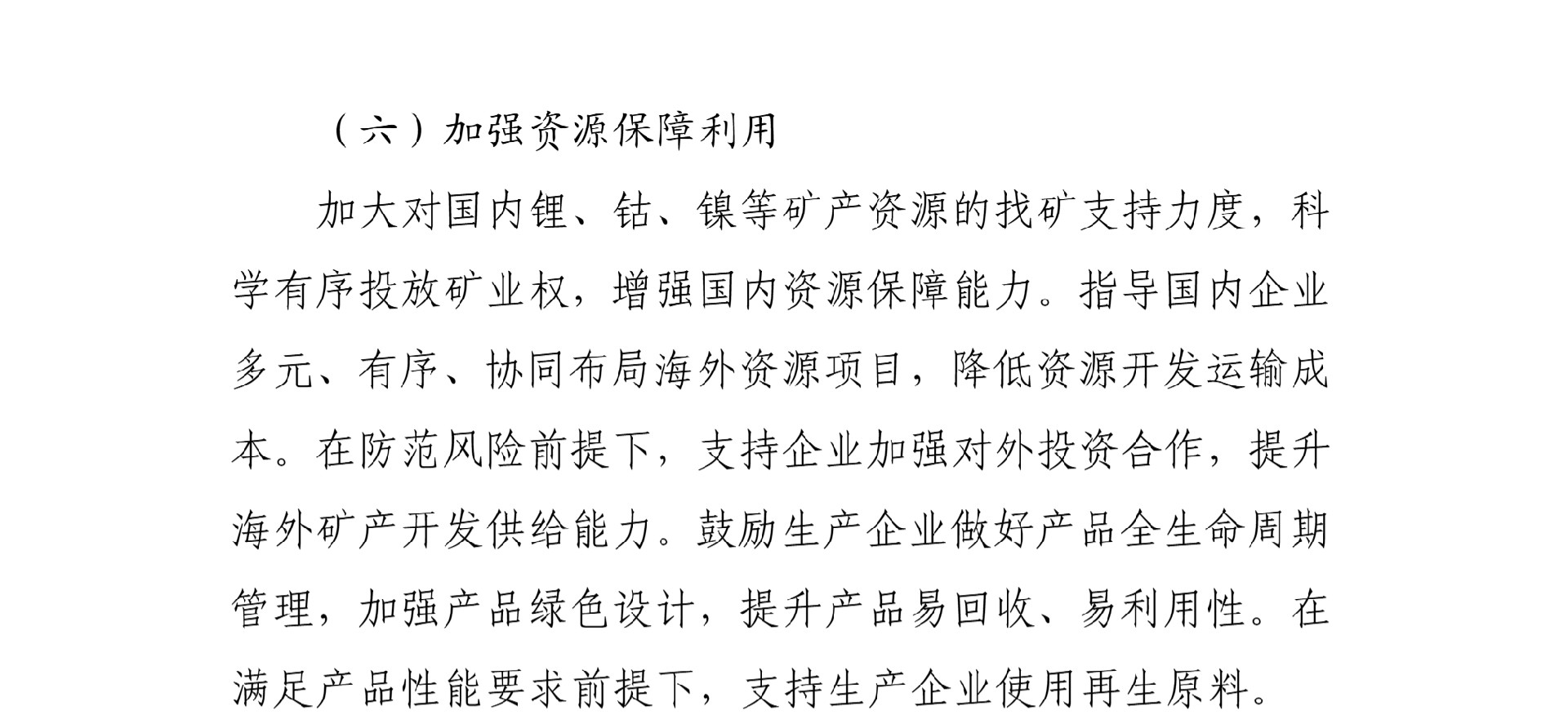 工業(yè)和信息化部等八部門印發(fā)《新型儲能制造業(yè)高質(zhì)量發(fā)展行動方案》,方案中提到要加強(qiáng)資源保障利用。